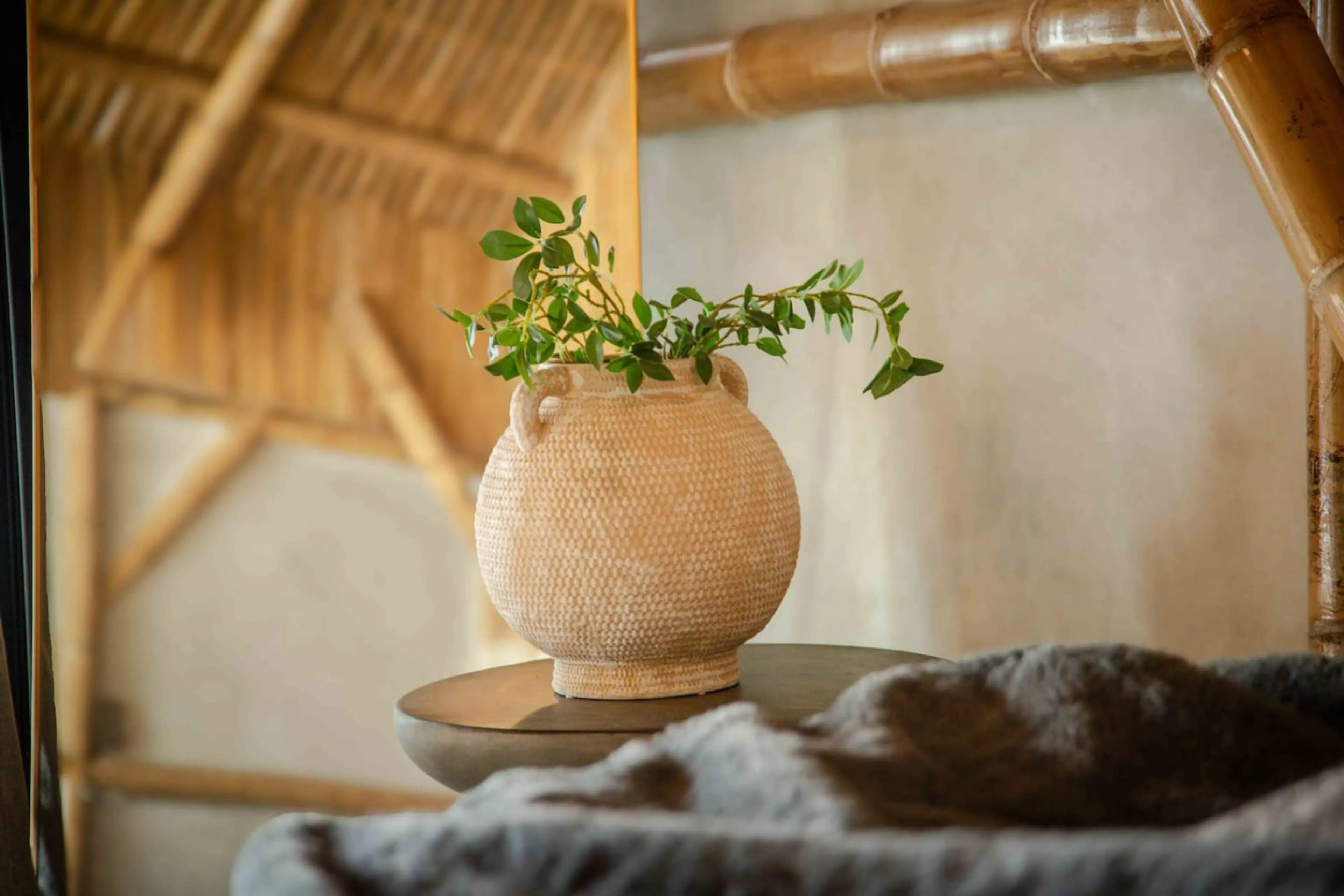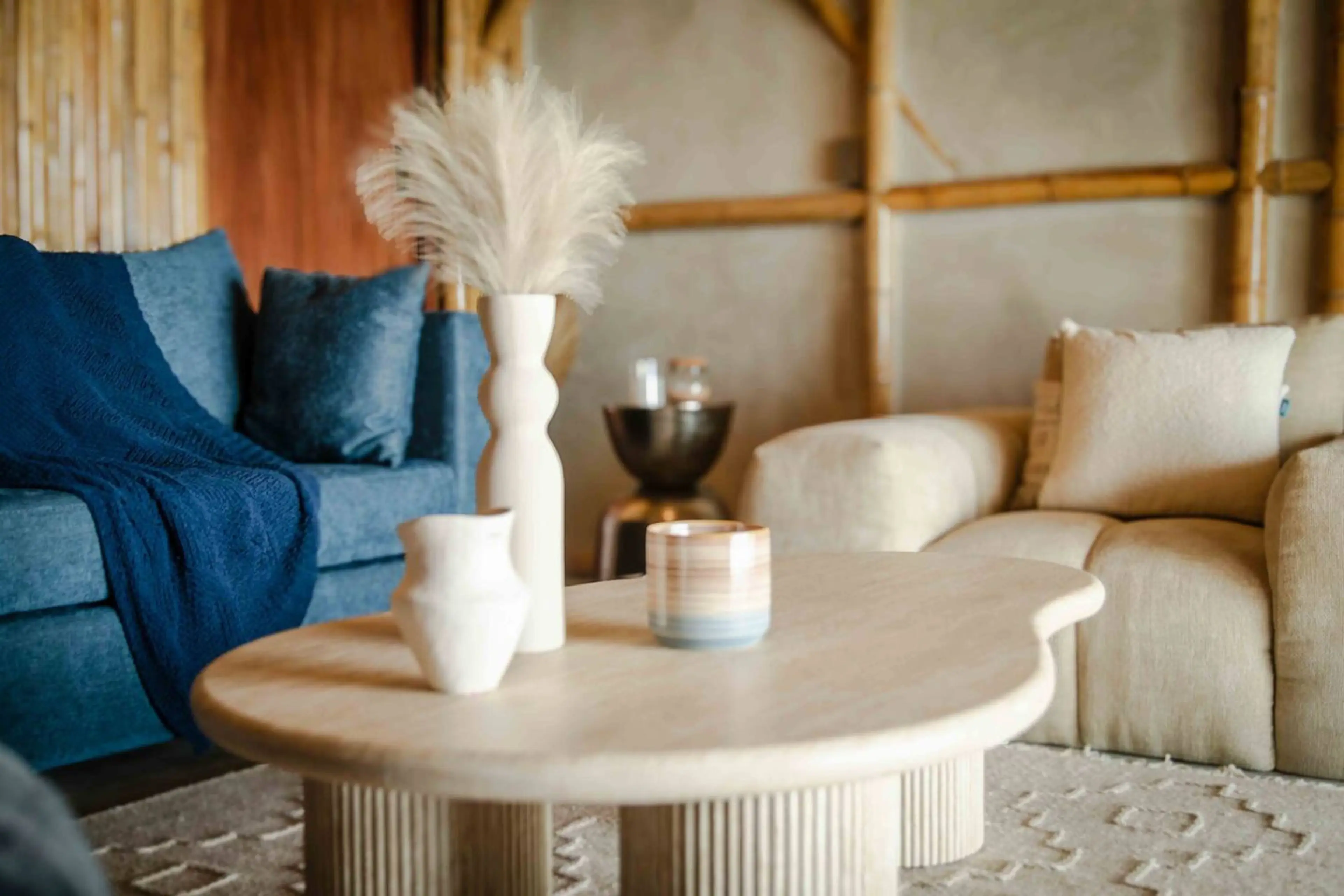 Una cabaña de ensueño construida en bambú, con terraza privada y vista exclusiva al mar. Cuenta con un salón acogedor frente al mar con sofá cama, hamaca, y minifridge. La habitación principal con cama King Size y baño con ducha.
